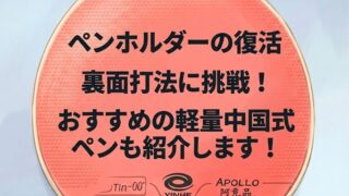 ペンホルダープレーヤーの有効な打法「裏面打法」でありがちな「ボールが指に当たる」。これは、裏面打法で打球したボールの球質に対する認識が足りないのかもしれません。原因や対応策について考えてみましょう。(中国式ペン、反転式ペン)