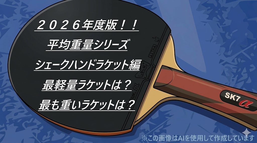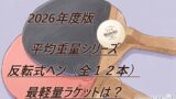 シェークハンドラケットは、重量にシビアなペンホルダーラケットほどは軽さにこだわるプレーヤーは多くはないと思いますが、参考までに掲載しますので興味のある方はご覧ください。2026年度更新版については、重いラケットのランキングも追加しています。